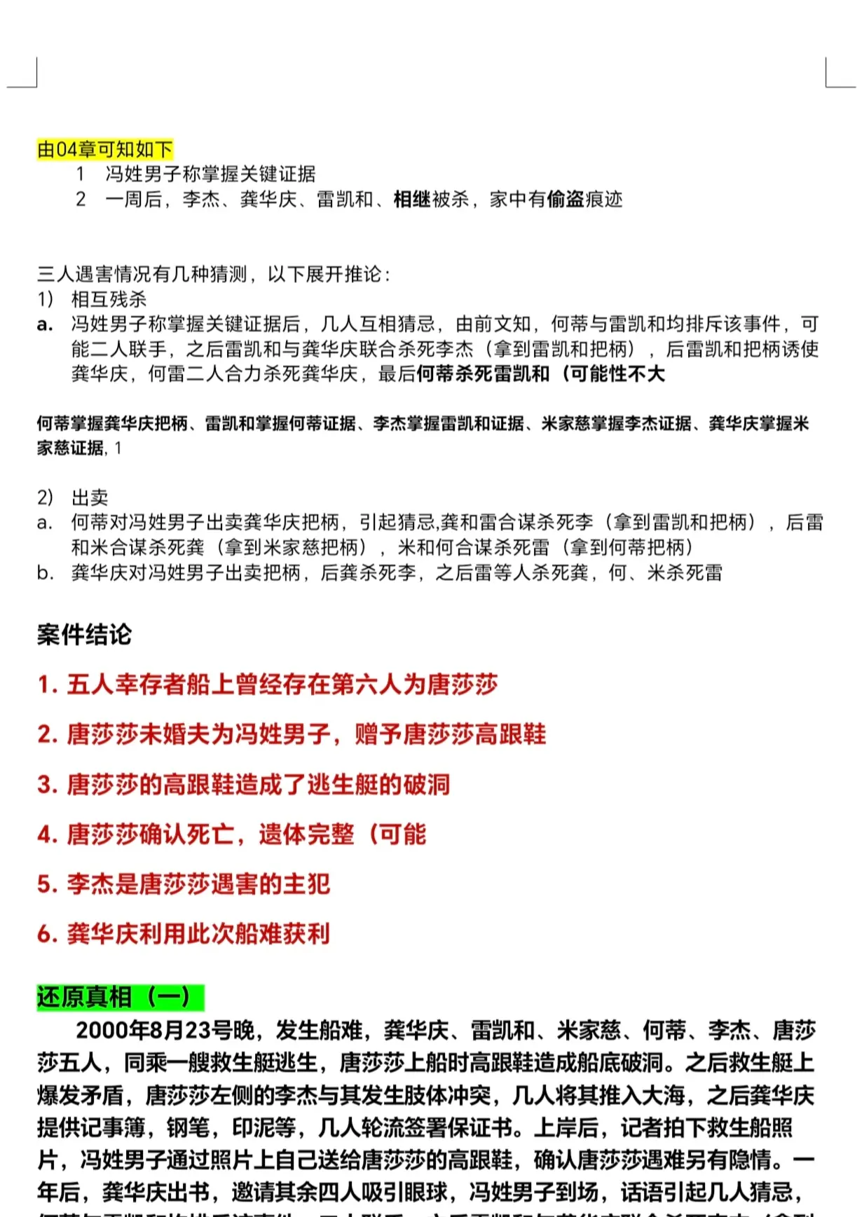 版本一:馮親自動手一一尋找五人.此間何,米老實交代并給出保證書且因二人非主謀而只得吃牢飯下場(先拿何開刀自然知道一切,唯一女性).后逐以報仇為目的殺死剩下的三人并搜得保證書.后一并投案自首? ///概率低感覺,不合我對讀書人的刻板印象