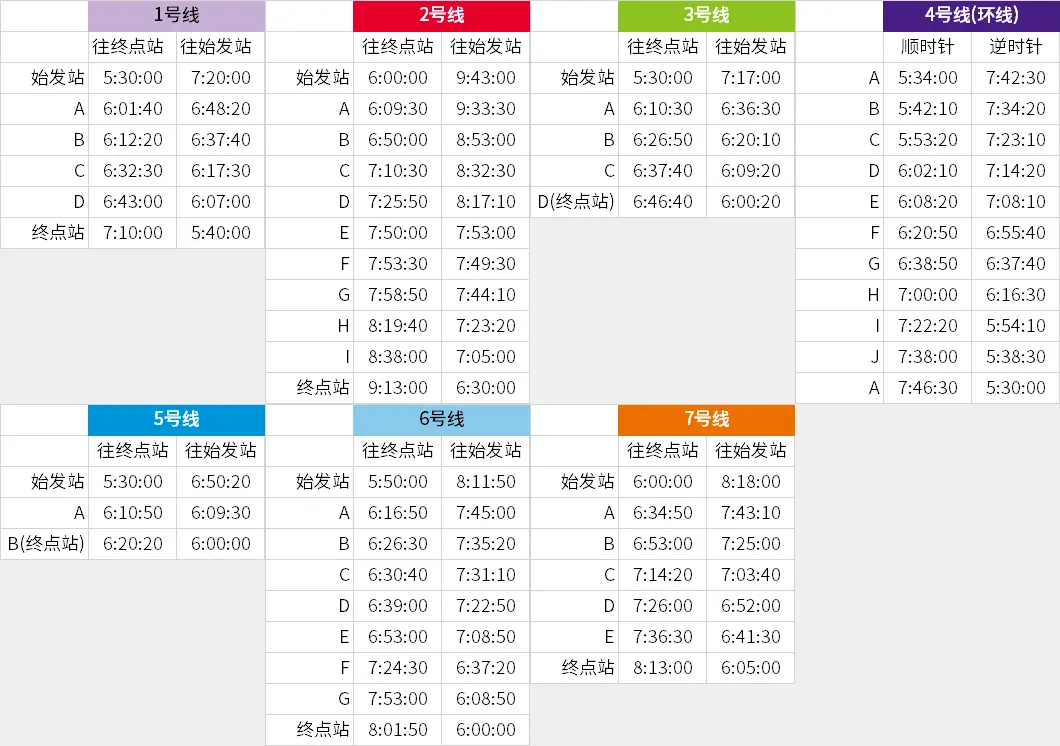 圖3 各線路首班車時刻表 ▲